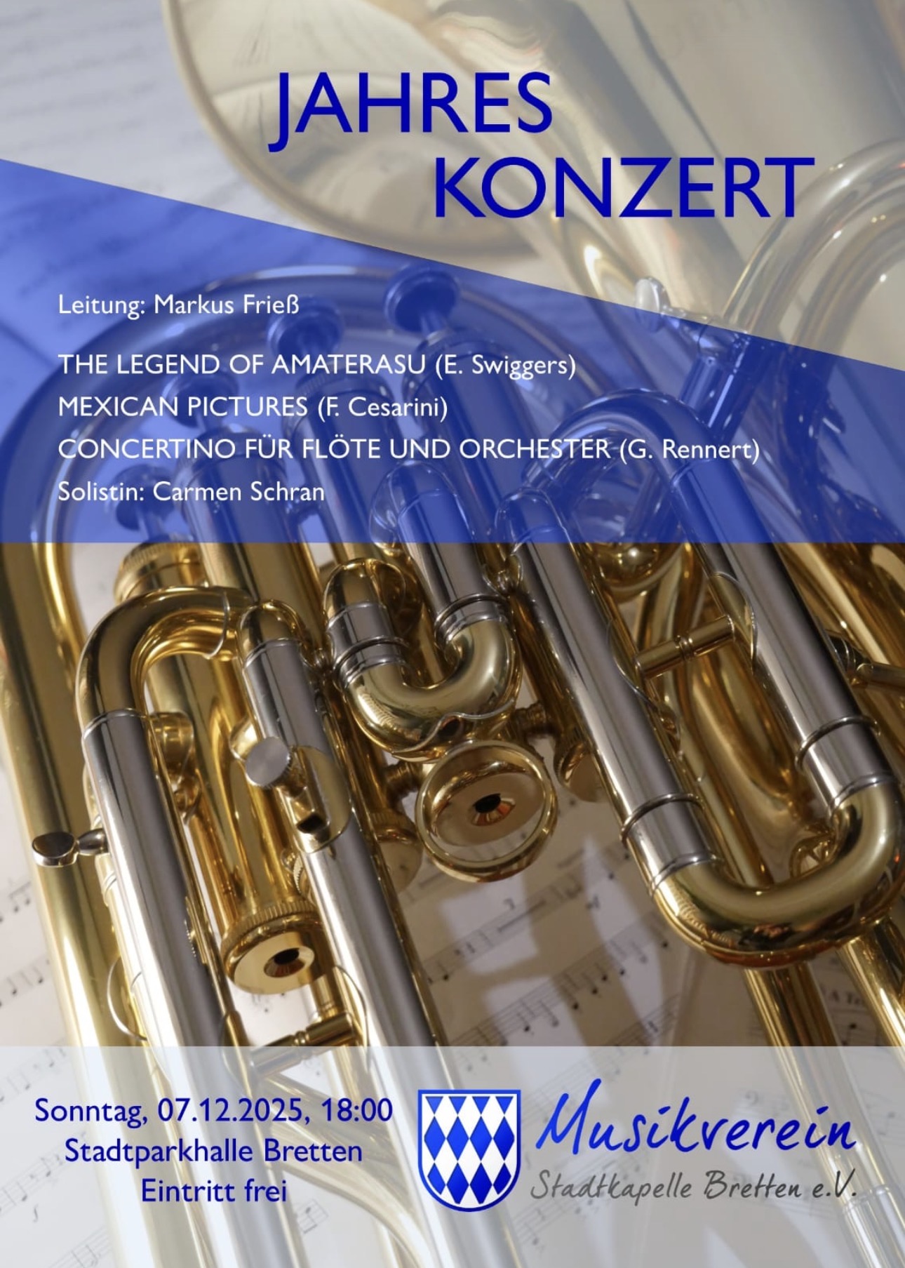 Sonntag 7. Dezember18:00Jahreskonzert der Stadtkapelle BrettenStadtparkhalle Bretten